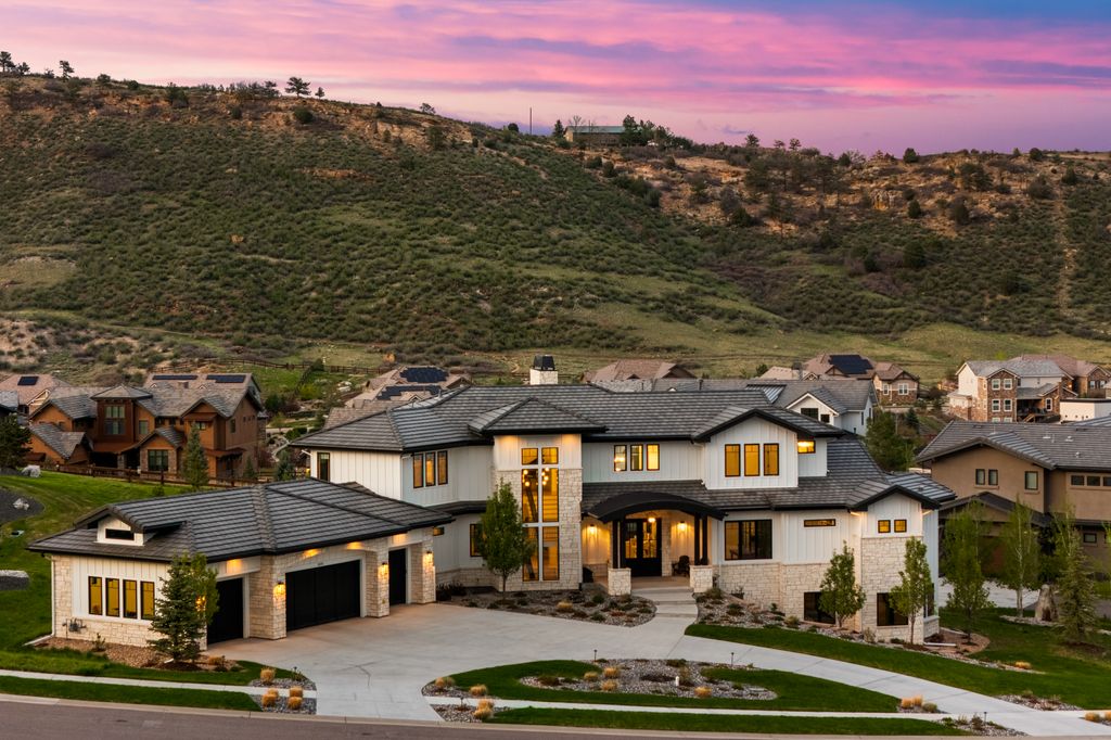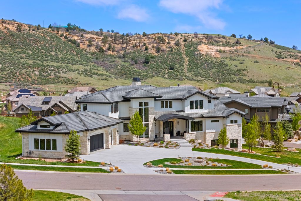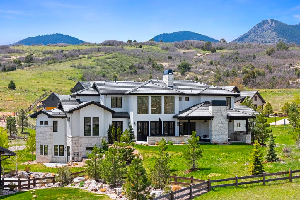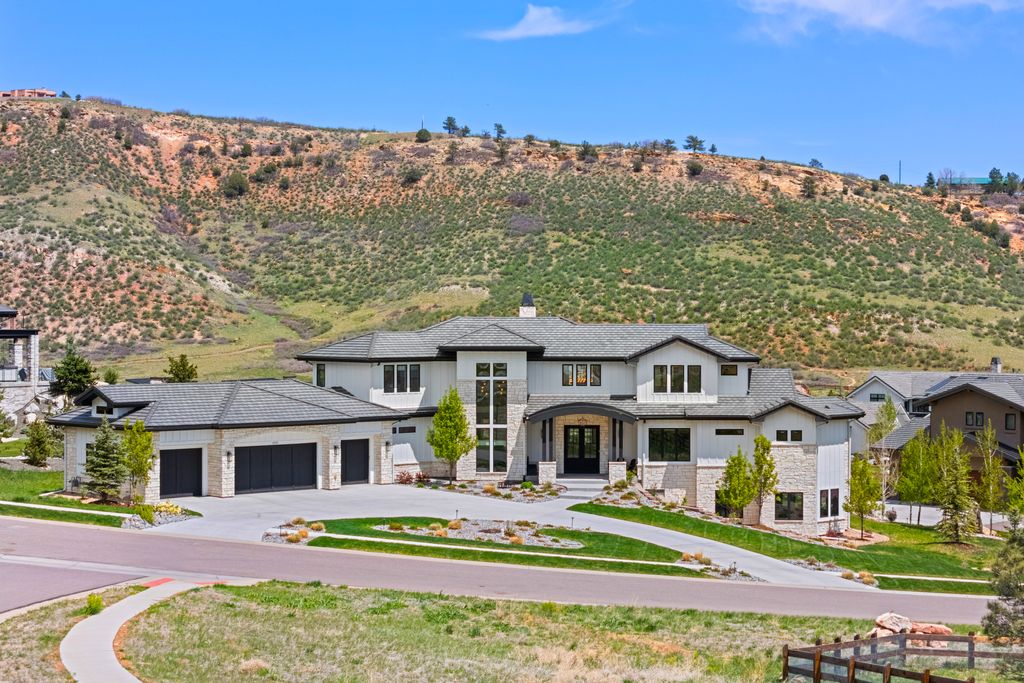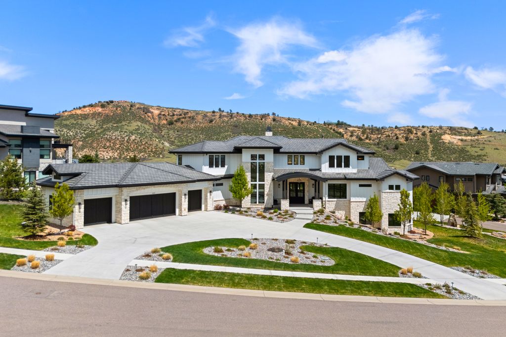 Welcome to The Charm House, built by Terracina Custom Homes and situated high above the city where the foothills invite you into a world of serene sophistication. This custom-crafted residence offers an elevated lifestyle shaped by its inspiring natural surroundings and refined design. Step into the great room, where a wall of windows reveals the home’s panoramic views in full splendor, washing the space in natural light. Soaring ceilings and impeccable finishes set the tone for a home that is as much a retreat as it is a statement. The heart of the home lies in its extraordinary kitchen, crafted for those who love to cook and those who love to gather. With a built-in ice-maker (featuring coveted "Sonic" ice), an oversized island, a 48" range, dual dishwashers and abundant counter space, every thoughtful detail enhances both its function and beauty. The primary suite offers a haven of calm and comfort. It features a fireplace-warmed sitting area, coffered ceilings, a custom walk-in closet and an enviable primary bath that boasts dual shower heads and a sculptural soaking tub. French doors lead to a private patio ideal for a future hot tub, where morning sunrises and star-filled nights will become part of your daily rhythm. Upstairs, three impressive ensuite bedrooms offer privacy and comfort for family or guests. One of these spacious suites includes a sitting area that makes it ideal for a second primary or luxurious guest quarters. Throughout the home, Restoration Hardware lighting and high-end finishes lend quiet luxury to every space. The unfinished, partial walk-out basement is already plumbed for two additional bathrooms that are only awaiting your vision for future expansion. The covered outdoor kitchen, living area, stone fireplace and integrated TV wiring create the perfect setting for effortless year-round entertaining. This outdoor space is punctuated by a beautifully lit waterwall feature that offers a tranquil yet dramatic backdrop for relaxing after dark. Set on 3/4 of an acre in the desirable Montane subdivision. and just minutes from Red Rocks Country Club and its scenic golf course, this home is cradled by miles of trails. yet it is only moments from the energy of the city.