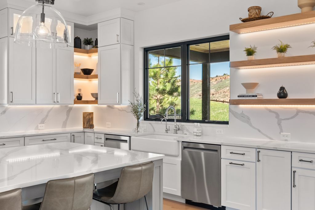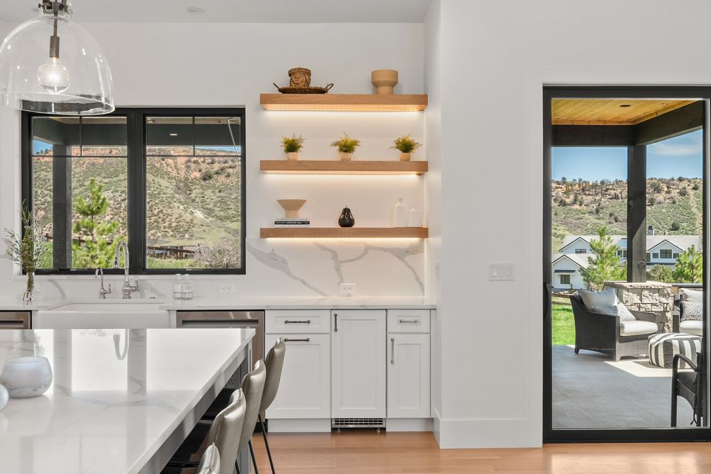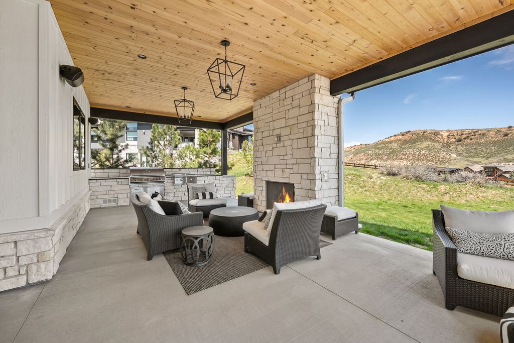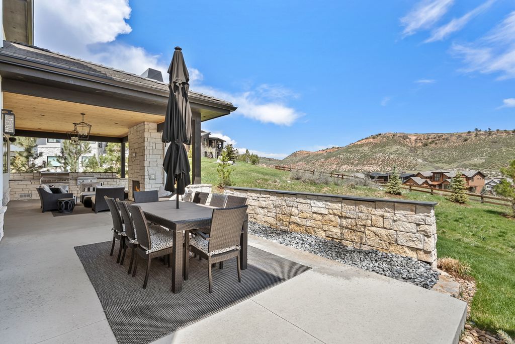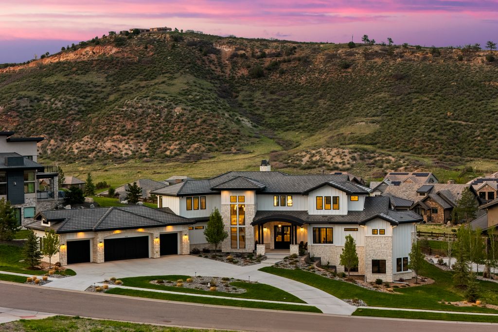 Welcome to The Charm House, built by Terracina Custom Homes and situated high above the city where the foothills invite you into a world of serene sophistication. This custom-crafted residence offers an elevated lifestyle shaped by its inspiring natural surroundings and refined design. Step into the great room, where a wall of windows reveals the home’s panoramic views in full splendor, washing the space in natural light. Soaring ceilings and impeccable finishes set the tone for a home that is as much a retreat as it is a statement. The heart of the home lies in its extraordinary kitchen, crafted for those who love to cook and those who love to gather. With a built-in ice-maker (featuring coveted "Sonic" ice), an oversized island, a 48" range, dual dishwashers and abundant counter space, every thoughtful detail enhances both its function and beauty. The primary suite offers a haven of calm and comfort. It features a fireplace-warmed sitting area, coffered ceilings, a custom walk-in closet and an enviable primary bath that boasts dual shower heads and a sculptural soaking tub. French doors lead to a private patio ideal for a future hot tub, where morning sunrises and star-filled nights will become part of your daily rhythm. Upstairs, three impressive ensuite bedrooms offer privacy and comfort for family or guests. One of these spacious suites includes a sitting area that makes it ideal for a second primary or luxurious guest quarters. Throughout the home, Restoration Hardware lighting and high-end finishes lend quiet luxury to every space. The unfinished, partial walk-out basement is already plumbed for two additional bathrooms that are only awaiting your vision for future expansion. The covered outdoor kitchen, living area, stone fireplace and integrated TV wiring create the perfect setting for effortless year-round entertaining. This outdoor space is punctuated by a beautifully lit waterwall feature that offers a tranquil yet dramatic backdrop for relaxing after dark. Set on 3/4 of an acre in the desirable Montane subdivision. and just minutes from Red Rocks Country Club and its scenic golf course, this home is cradled by miles of trails. yet it is only moments from the energy of the city.