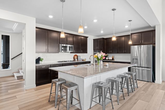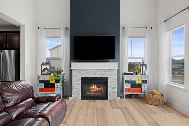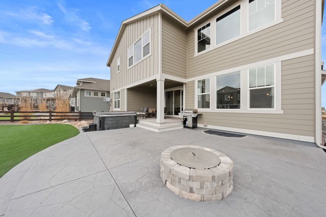 Experience modern elegance and thoughtful upgrades in this stunning Aspen floorplan by Lennar, located in the sought-after Macanta community. This beautifully designed, smart home features a gourmet kitchen with a spacious island, seamlessly blending style and functionality, and a two-story great room that floods the space with natural light. Unlike new builds in the neighborhood, this home is fully landscaped with over $40,000 of professional upgrades, saving you significant time and expense. The front yard boasts a custom stone retaining wall, while the backyard offers a stamped concrete patio, fire pit with wood-burning and gas options, hot tub on a reinforced concrete pad, and turf for a virtually maintenance-free yard. Backing to a peaceful greenbelt, this outdoor retreat is perfect for enjoying Colorado’s breathtaking scenery year-round. Inside, the home’s design shines with 9' ceilings throughout, a primary suite with coffered ceilings, and a spa-like bathroom featuring a double-head shower. All showers include built-in benches, while the upstairs laundry and built-in cubbies in the mudroom offer everyday convenience. A versatile main-level bedroom is ideal for guests or multi-generational living, and the unfinished basement provides endless opportunities for customization. This home’s location is a dream—just a 5-minute walk to the Macanta community center, which includes a pool, playground, gym, and banquet room, along with scenic trails and open spaces. Conveniently close to downtown Castle Rock and local amenities, this residence offers the perfect balance of comfort, convenience, and modern design. With its fully landscaped yard and upgrades, this home is a better value than new builds, which don’t include backyard landscaping. Move in and enjoy a beautifully finished home designed for effortless living—your dream lifestyle in Macanta awaits! Seller to provide a 1-year Home Warranty at closing.